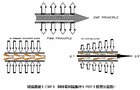 橫向安裝的膜組件的組件位置和透析液流向